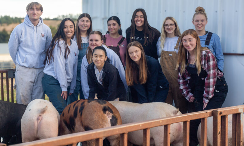 The Student Swine Cooperative (SSC) is a group of undergraduate students interested in learning about swine management and receiving hands-on experience. The students work closely with advisors and members of the pork industry. They are responsible for managing a small herd farrow to finish in a modern swine facility. The students are responsible for all aspects of running a profitable business. Students also have the opportunity to get involved in the industry and help educate the general public about the pork industry through community service. Since this is a cooperative, students also learn how to work as a team.